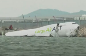 Çarpışma sonrasında TC-ACF kuyruk tescilli B747-400F pistten çıkarak denize düştü.