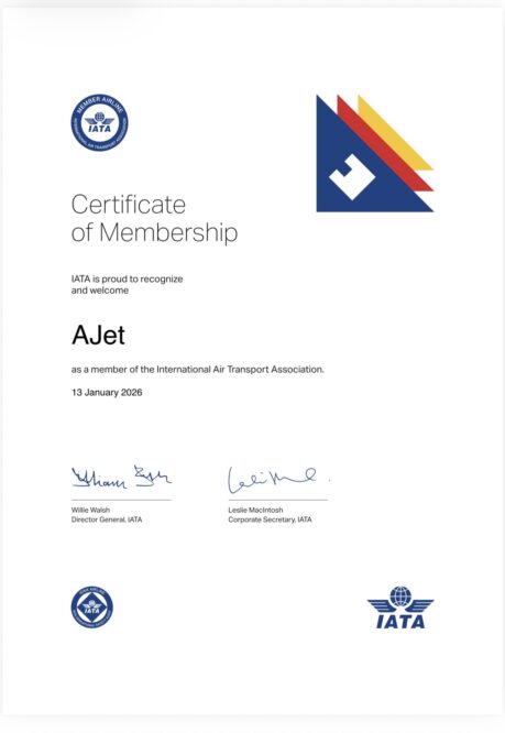 AJet IATA Sertifikasını aldı