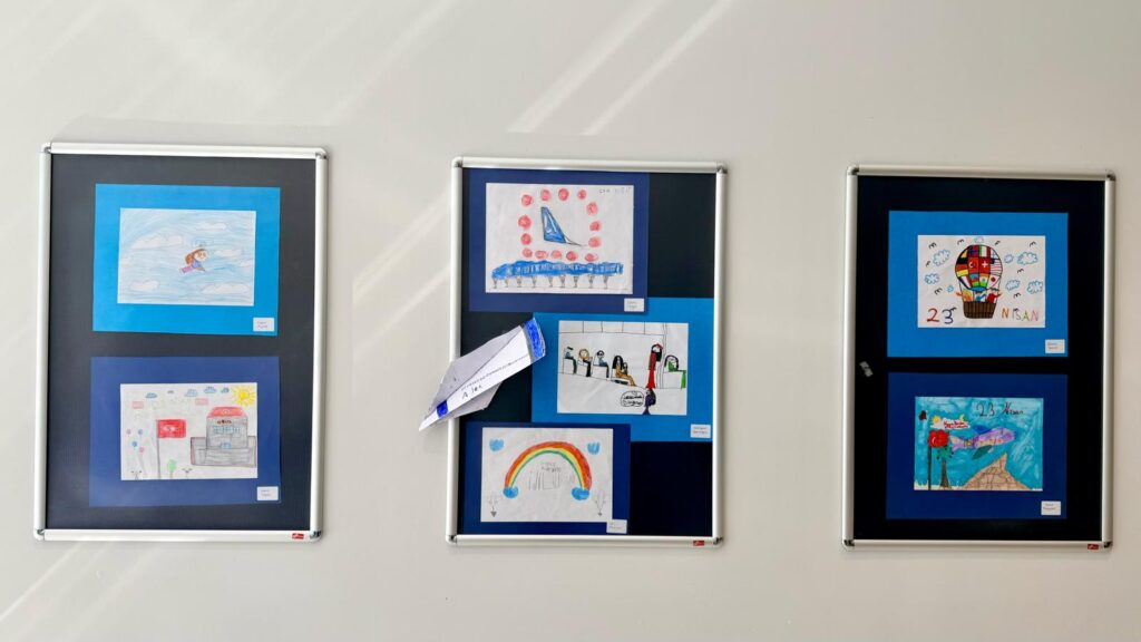 AJet’te çocukların bayram neşesi, yalnızca etkinliklerle sınırlı kalmadı. AJet çalışanlarının çocuklarının hazırladığı resimlerden oluşan “23 Nisan Sergisi”, AJet Genel Müdürlük binasının duvarlarını süsleyerek bayram coşkusunu yaşatmaya devam ediyor.
