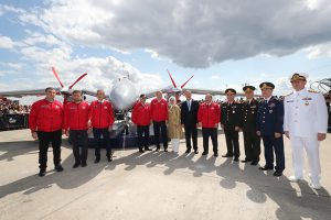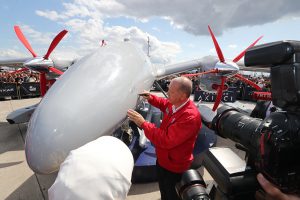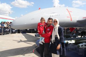 Başkan Erdoğan festival kapsamında sergilenen Türkiye’nin yerli ve milli silahlı İHA’sı Akıncı’nın üzerine imzasını attı.