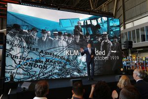 KLM’in CEO’su Pieter Elbers kutlamalar sırasında ”100’üncü yılımızı kutluyor oluşumuz sadece asırlık başarılı bir firmanın, yeniliğin ve ticaretin mirası değil, aynı zamanda müşterilerimizin ve partnerlerimizin KLM’e olan inancı. Bu kelimenin tam anlamıyla sivil havacılığı dünya çapında haritaya koyan KLM’in havacılık öncülerine bir övgüdür. KLM orijinal adı ile çalışan en eski uluslararası havayoludur. Biz, sonrasında ülkelerin ve havayollarının takip ettiği, başarılı bir şekilde partnerlik ve ittifaklar kuran ilk havayoluyuz. Bu, dünya çevresinden yüz milyonlarca insanı bir araya getirdi. Albert Plesman’in dediği gibi: “”gökyüzündeki okyanusun insanları bir araya getirmesi” 100 yılı aşkın başarılarımızın ve çabalarımızın uzun listesi ile gurur duyuyoruz. Böylece yeni yüzyılın eşiğinde enerjik ve özgüvenli olarak duruyoruz. Aynı öncü ve girişimci ruhla, önümüzdeki sürdürülebilirliğin ve yeniliğin zorluklarına iyimserlikle bakıyoruz.” dedi.