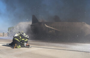 Alarm durumuna geçen Havalimanı Kurtarma ve Yangınla Mücadele (ARFF) ekipleri, kısa sürede olay yerine ulaştı. ARFF ekip liderinin ilk değerlendirmesinde, rüzgârın 21 pist yönünden 5 knot kuvvetinde estiği, uçağın sağ kanadının yanmakta olduğu ve mürettebatın kapıyı açarak acil tahliye slaydını aktif ettiği belirlendi. Yolcular slayt üzerinden tahliye edilirken yaralıların olduğu, ayrıca uçak içinde mahsur kalan yolcu ve mürettebatın bulunduğu senaryo gereği tespit edildi.