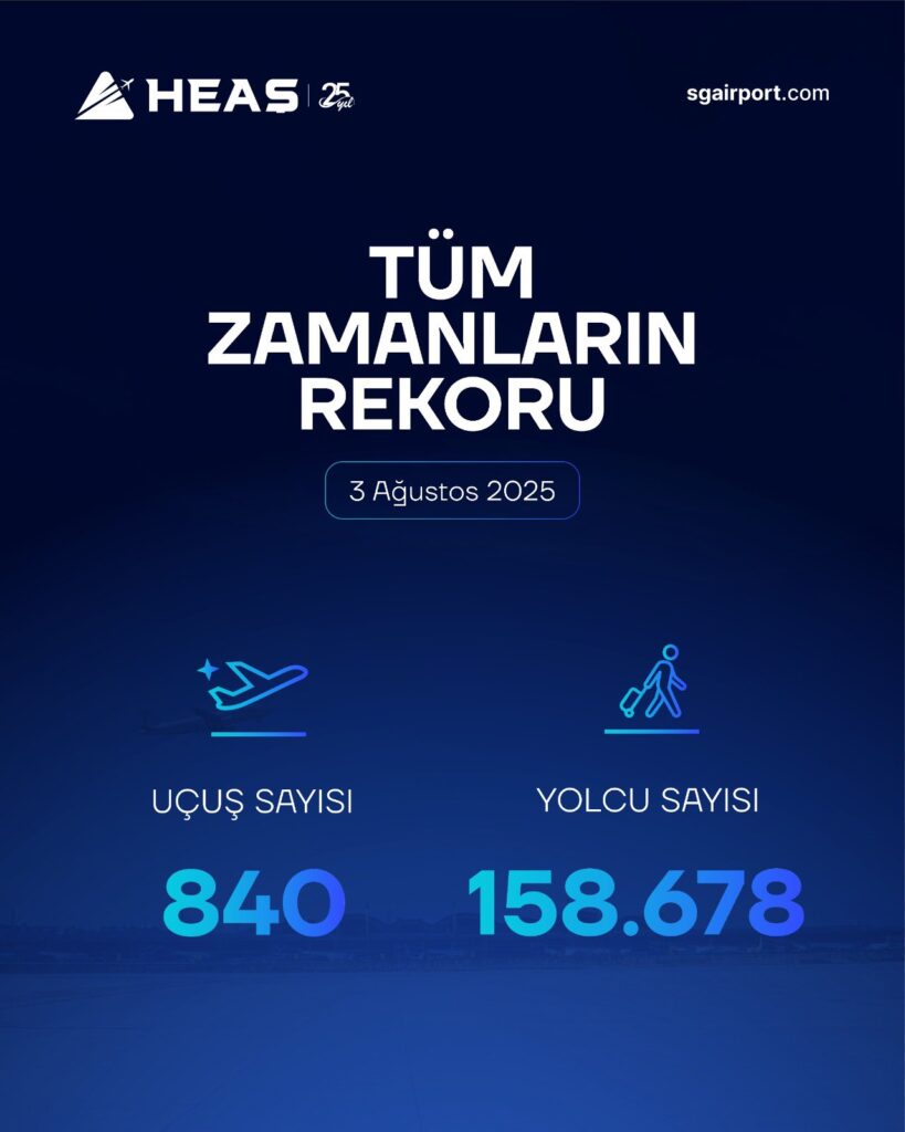 🛫👥 3 Ağustos 2025 tarihinde, 840 uçuş ve 158.678 yolcu ile tüm zamanların en yüksek günlük uçuş ve yolcu rekorunu kırdık!
