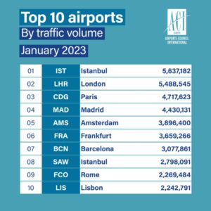 Avrupa Uluslararası Havalimanları Konseyi (ACI Europa) verilerine göre İGA İstanbul Havalimanı Ocak 2023’ü lider olarak tamamladı.