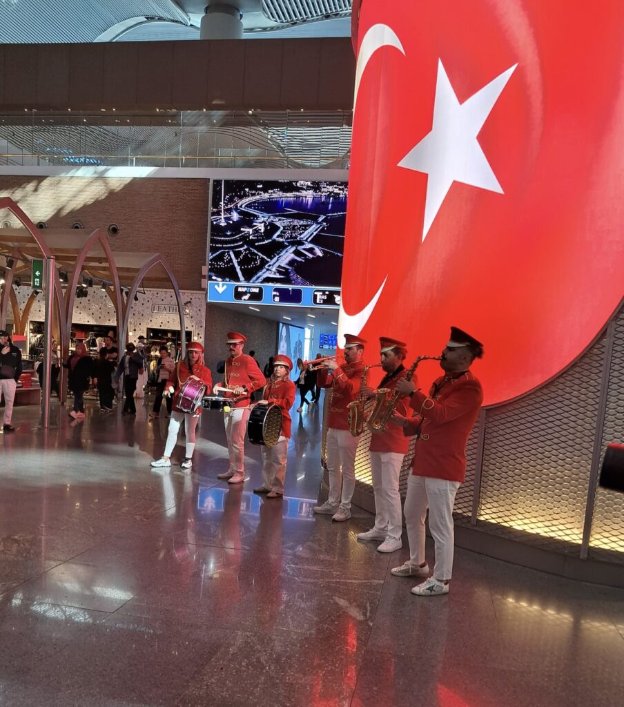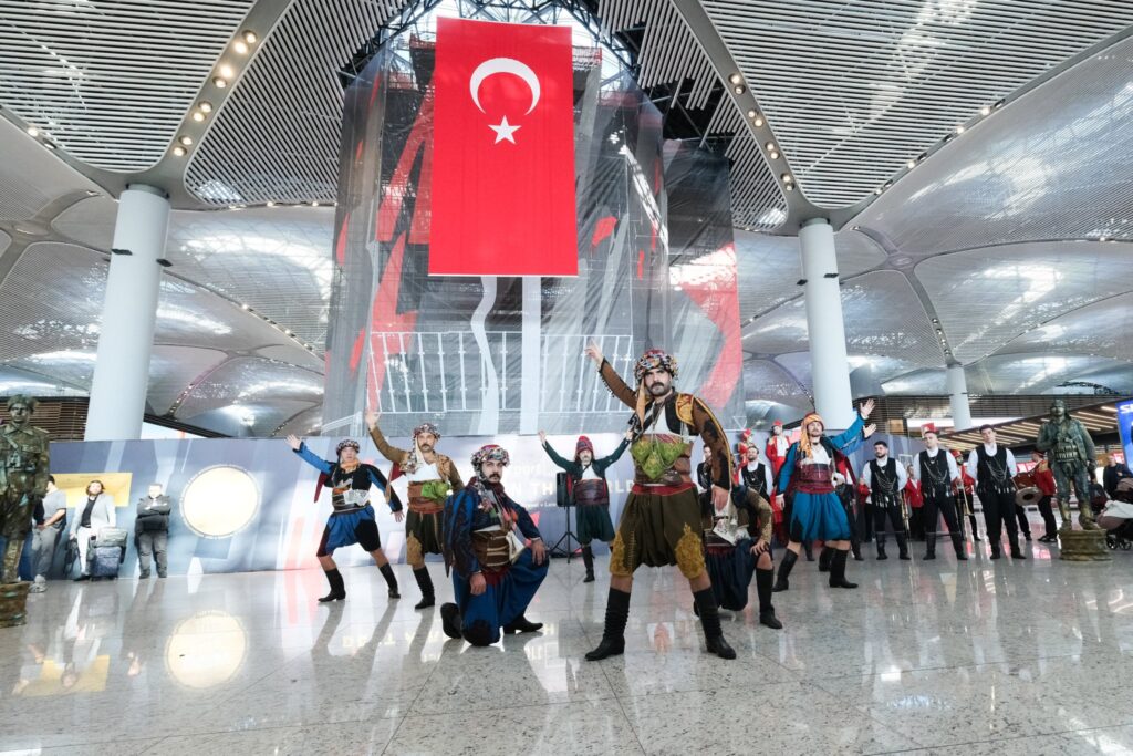 İGA İstanbul Havalimanı’nda Cumhuriyetin 102. senesi coşkuyla kutlandı. Terminal içinde gerçekleştirilen kutlamalar da yabancı konuklara Türk bayrağı hediye edildi. Müzik ve folklor ekiplerinin sergiledikleri gösteriler yolcuların yoğun ilgisini çekti.