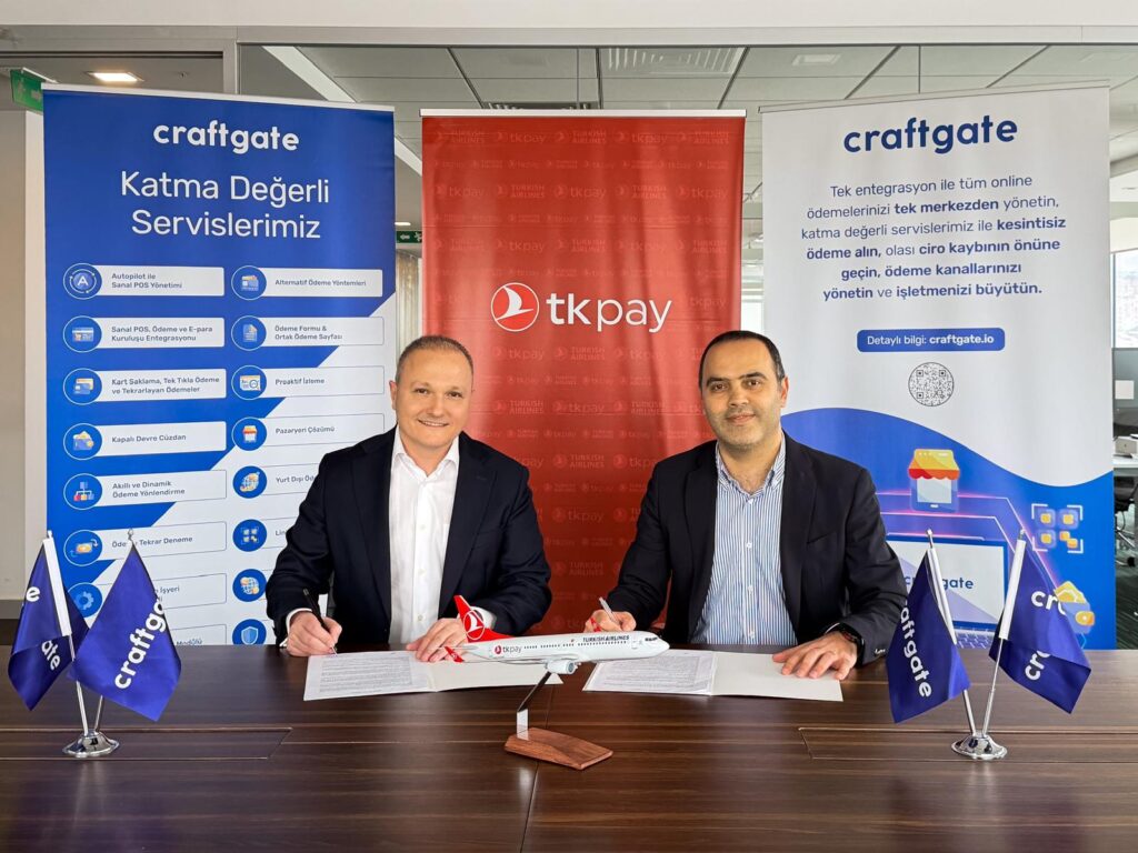 Türkiye’nin lider ödeme orkestrasyonu platformu Craftgate, Türk Hava Yolları %100 iştiraki ve Türkiye Cumhuriyet Merkez Bankası lisanslı elektronik para kuruluşu Türk Hava Yolları Elektronik Para ve Ödeme Hizmetleri A.Ş. (TKPAY) ile stratejik bir iş birliğine imza attı. TKPAY’in dahil olduğu ilk ödeme orkestrasyonu platformu olan Craftgate üye işyerleri, herhangi bir ek geliştirme sürecine ihtiyaç duymadan TKPAY’in kullanıcı odaklı ödeme çözümlerini mevcut ödeme akışlarına dahil ederek, müşterilerine daha geniş ve esnek ödeme seçenekleri sunabiliyor.